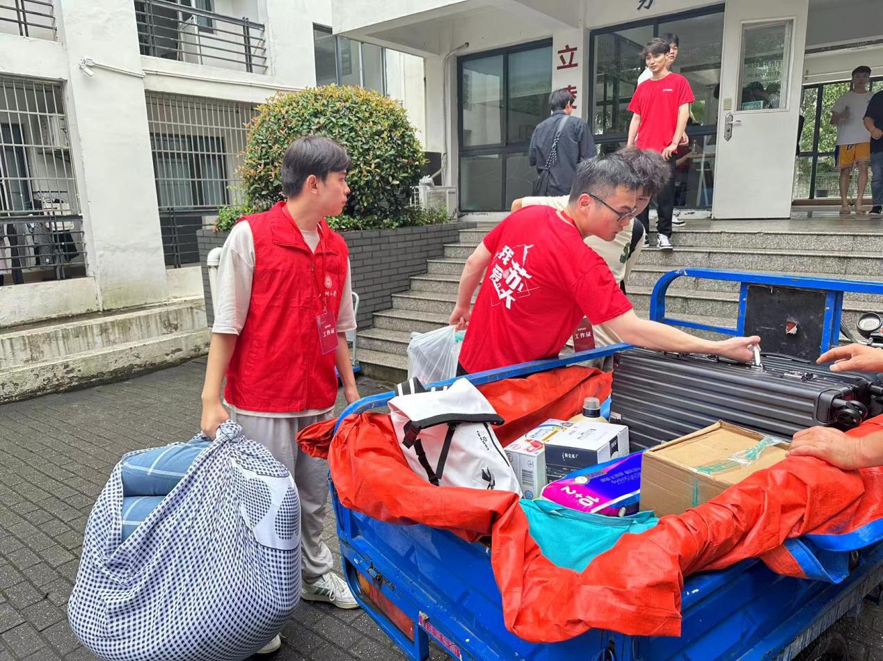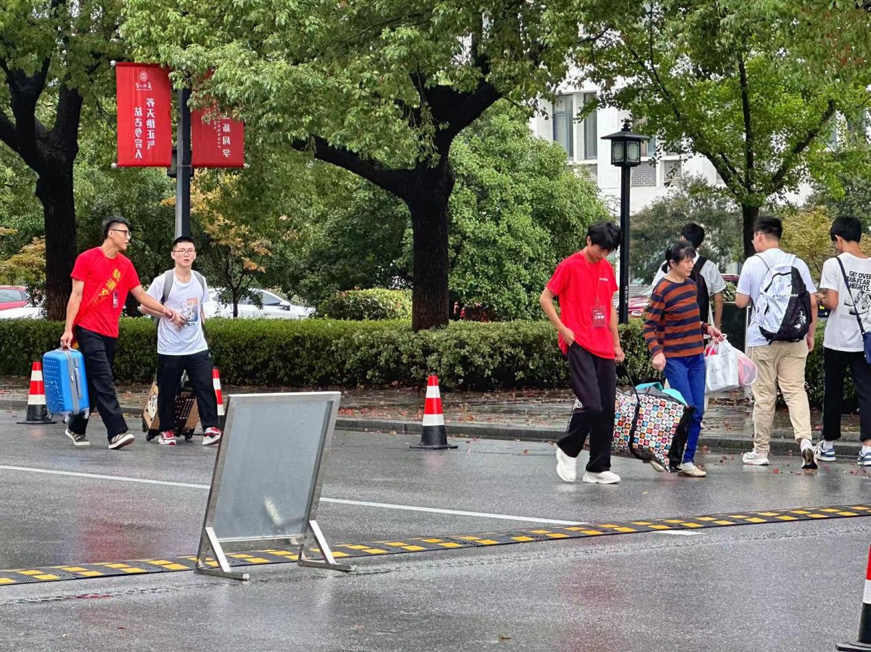 学生入住的宿舍公寓中,还专门安排了值班教师,让新生全面感受到学校有温度的人文关怀。天公虽不作美,雨水打湿了志愿者们的脸庞,汗水浸湿了志愿者们的衣裤,却也掩盖不了志愿者们的热情、新生们入校的喜悦心情。