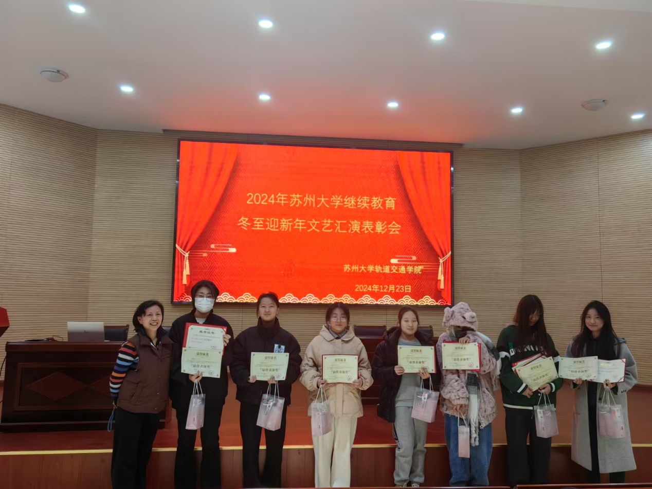 冬至元起,筑梦远航。2024年12月19日18:30,苏州大学继续教育学院在苏州市独墅湖影院举办了冬至晚会。本次晚会以“团结、奋进、共成长”为主题,汇聚了来自各学院的优秀节目,现场气氛热烈,观众们期待着每一个精彩的瞬间。