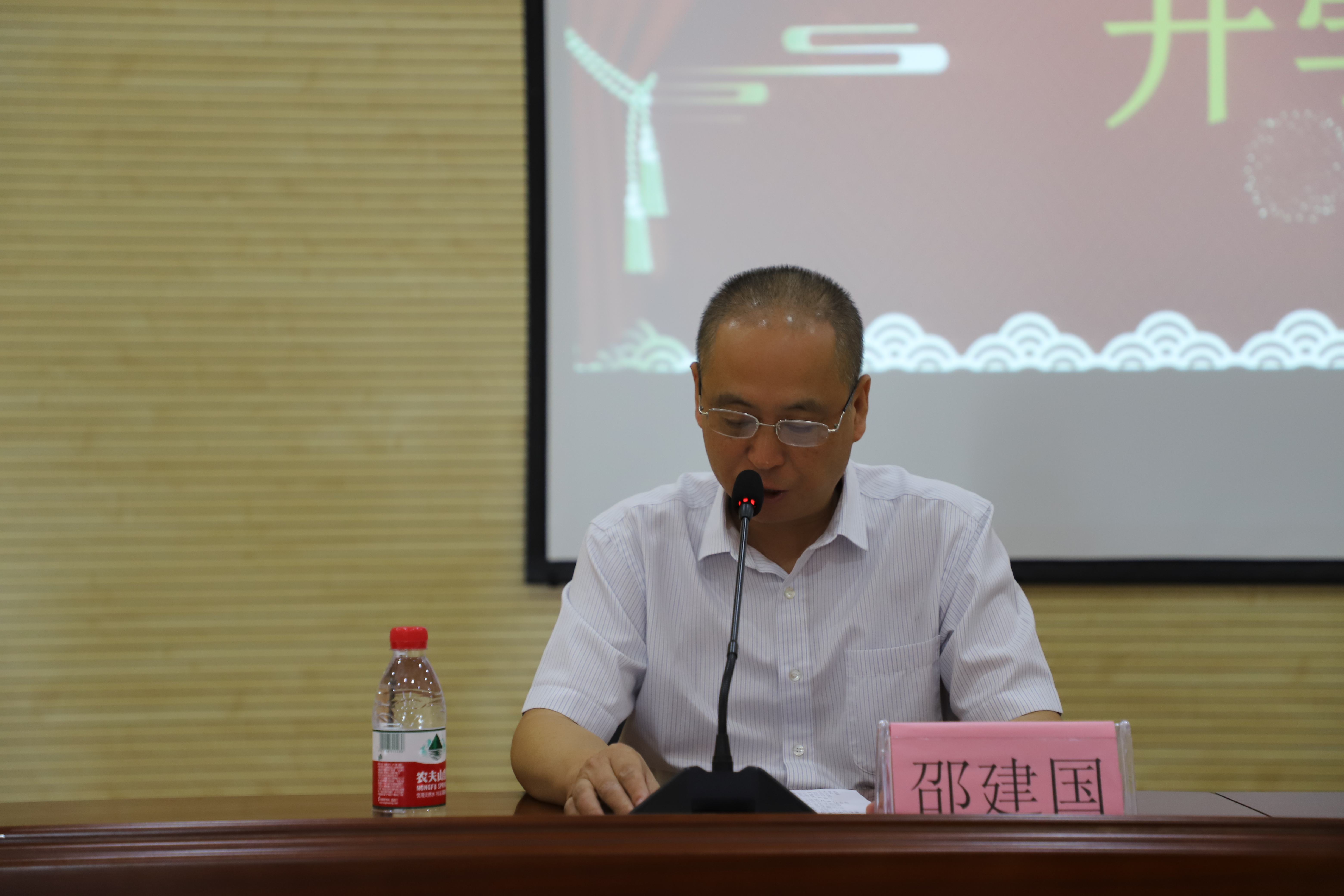 招生办主任邵建国老师首先做了开学迎新致辞及学院介绍,伴随着国歌的响起,全场师生肃然起立,2020级新生开学典礼正式开始。