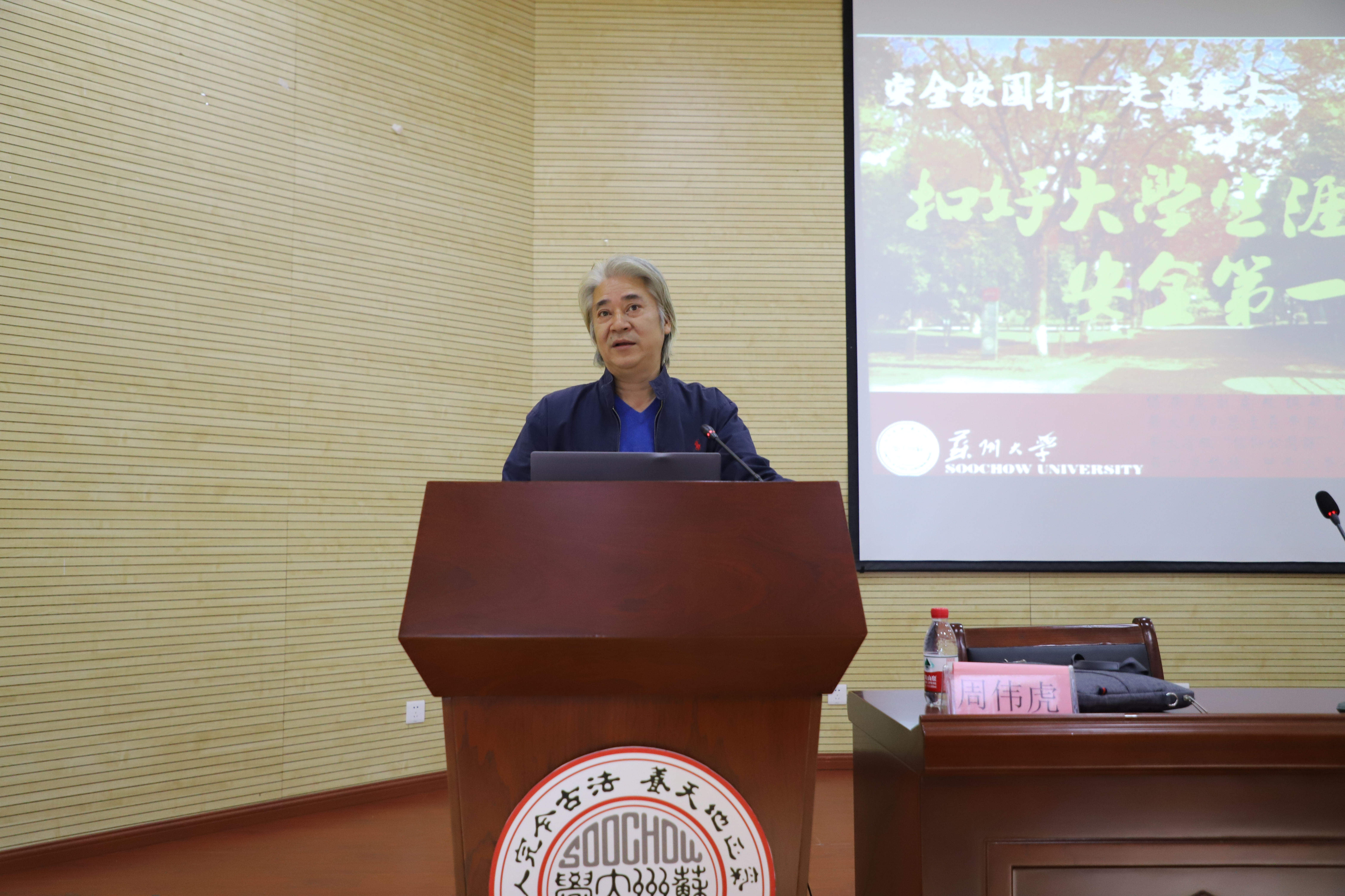 最后,保卫处处级调研员周伟虎老师为2020级新生做了校园安全讲座,提高师生自我防汇聚意识。让新生们普及安全教育知识,围绕大学生可能发生的人身财产安全等问题给大家列出一些有利的建议及措施,呼吁大学生不论在何处,都要注意自身人身财产安全问题
