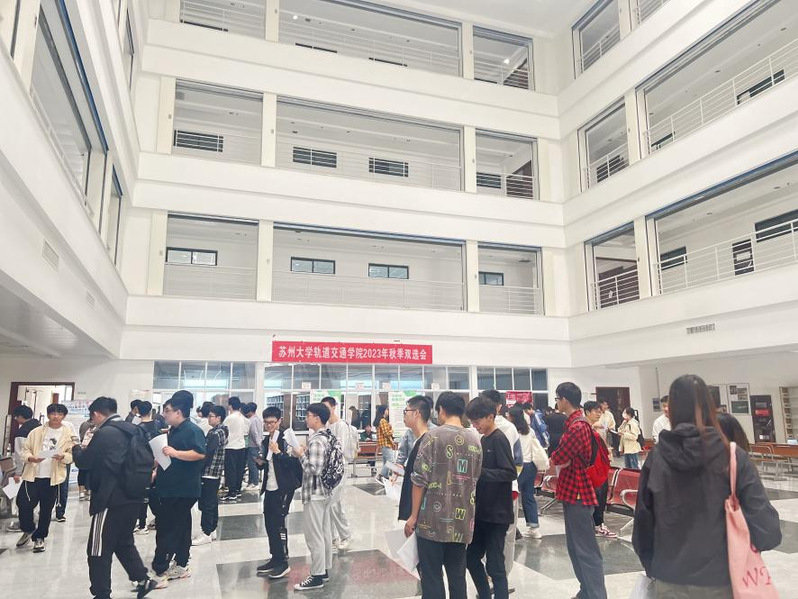 10月27日,轨道交通学院2023年秋季双选会在阳澄湖校区图书馆二楼大厅举办。为积极抢抓秋季校园招聘黄金期,全力保障2024届毕业生高质量充分就业,本次双选会共邀请17家用人单位参会,涵盖交通、建筑、新能源等多个领域。