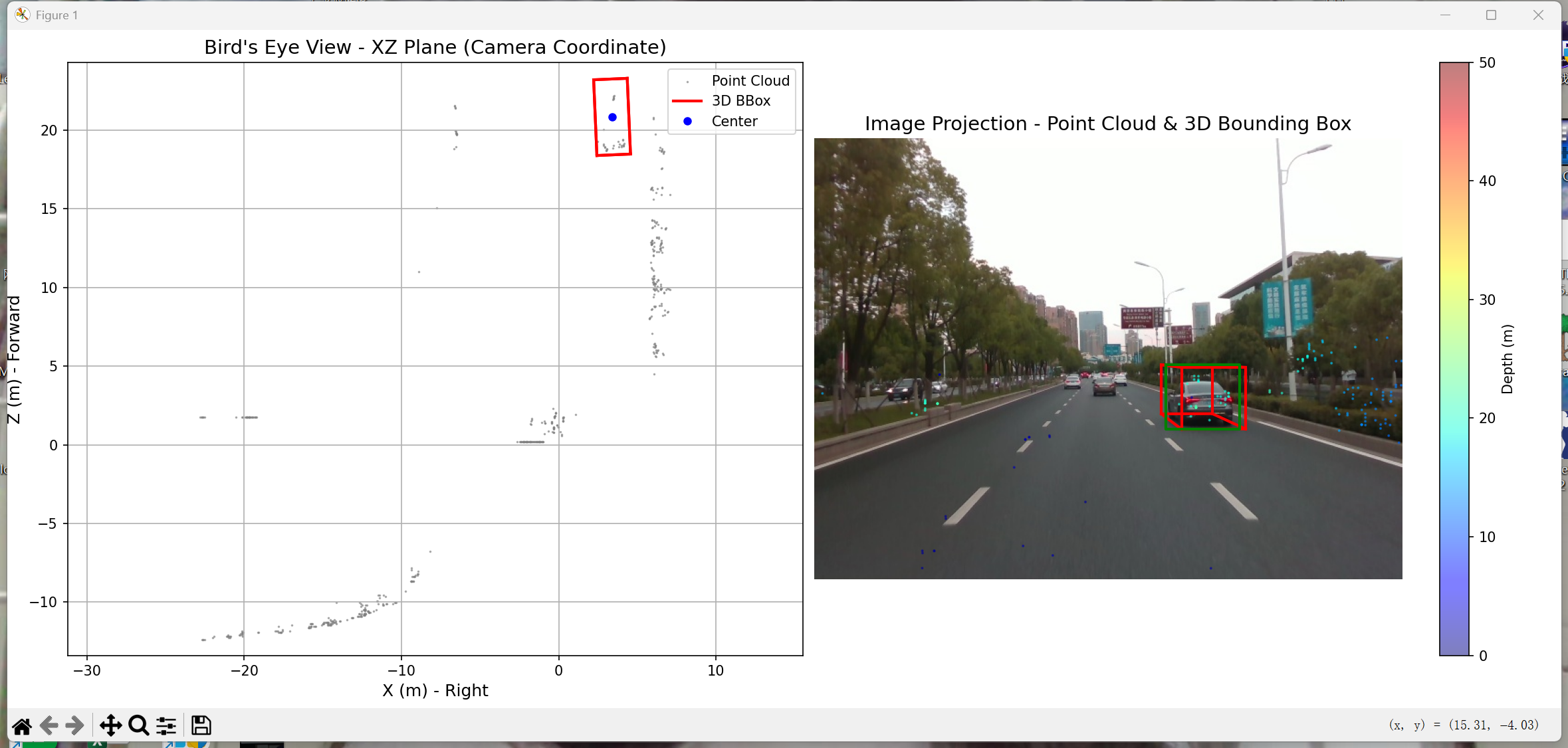 基于两阶段3D检测框架,项目创新性地将体素特征提取与R-CNN两阶段检测架构相结合,兼顾了体素方法的高效性和R-CNN精细调整的高精度。自适应样本分配机制的深度优化:采用ATSS目标分配策略,通过计算锚框与真实框的距离和IoU,动态确定正负样本阈值,解决了传统固定阈值分配导致的样本不平衡问题,提升了训练稳定性和鲁棒性。多维度特征融合与模块化架构:设计了“3D backbone→BEV转换→2D backbone”的特征处理链路;模块化设计支持灵活替换各组件(如VFE、backbone),有效提升了框架的扩展性。 针对3D检测的优化策略集成:结合3D检测任务特性,采用GPU加速的NMS(NMS_GPU)处理3D候选框,提升后处理效率;引入梯度裁剪(GRAD_NORM_CLIP=10),防止训练过程中出现梯度爆炸;使用Adam OneCycle优化器实现学习率动态调度,加速模型收敛。