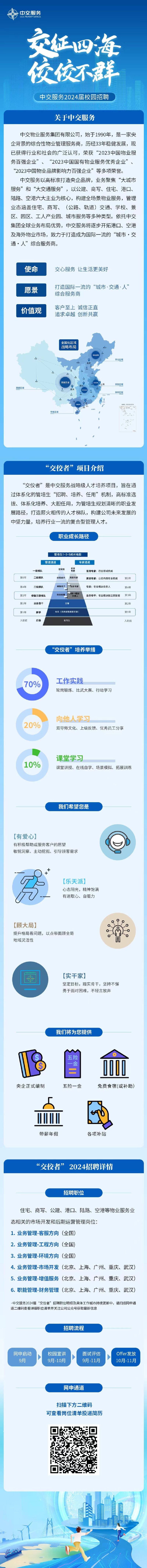 住宅、商写、公建、港口、陆路、空港等物业服务业态相关的财务管理、市场开发和后期运营管理岗位,详见投递链接。