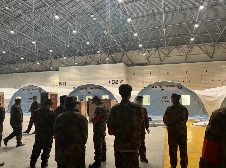 2月18日下午又接到政府通知每个社区需要出两个民兵,他又积极报名,和镇上其他40名民兵一起去盛泽支援新冠科研人员和搭建场地的工人,共同完成气膜方舱移动实验室的搭建等准备工作,顺利地完成了任务。