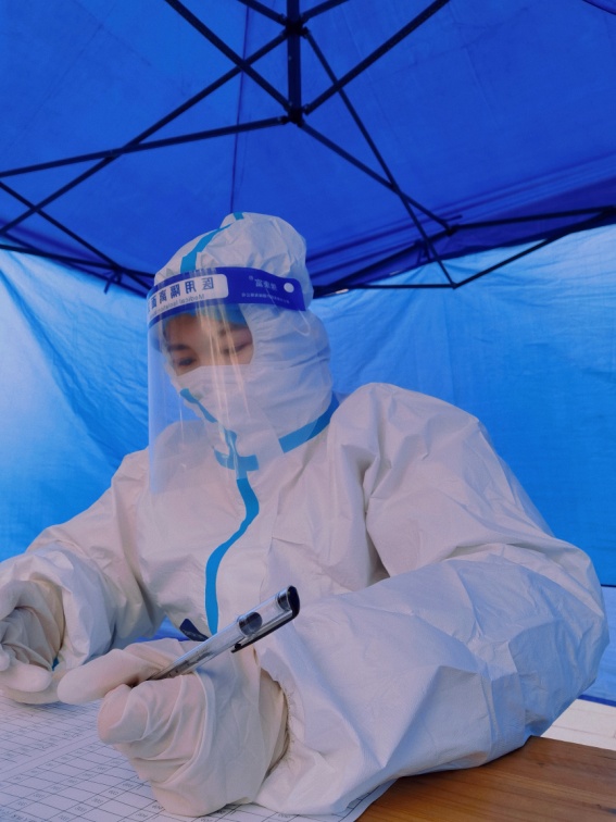 蒋翠萍说:第一次穿防护服,第一次进行检测结果的封箱、第一次和医护人员一起在工作现场吃盒饭等。每每听到居民朋友过来说“辛苦了”、“谢谢你们”的时候觉得万物皆浮尘,非亲历不知难,志愿者的工作让人难以忘怀。