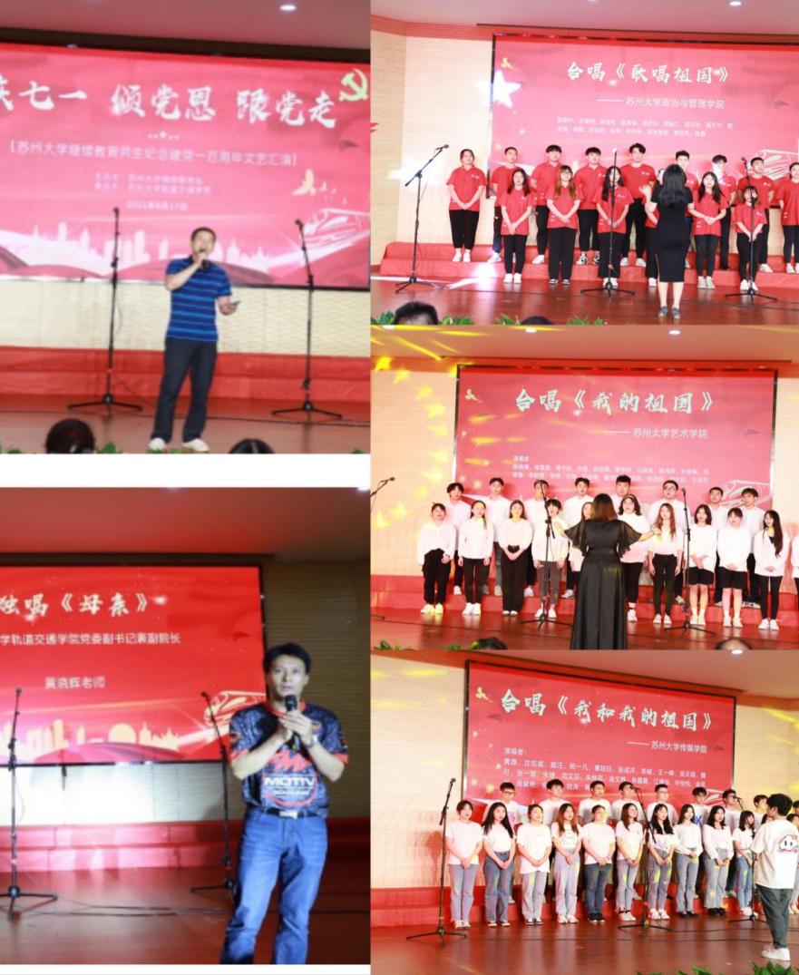 为庆祝中国共产党成立100周年,弘扬中华民族精神,讴歌党的光辉业绩,引导学生回顾经典,重温历史。由苏州大学继续教育处主办、苏州大学轨道交通学院承办“庆七一,颂党恩,跟党走”——苏州大学继续教育师生庆祝中国共产党成立一百周年文艺汇演于2021年6月17日(星期四)下午2:00,在苏州大学阳澄湖校区交通大楼二楼报告厅隆重举行。